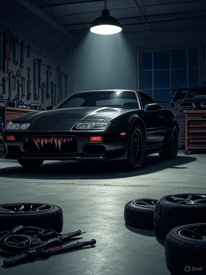 Kiedy wyszedł z poczekalni, pchany niezwykłą ciekawością zamiast do toalety, poszedł na halę warsztatową. Tam pośrodku, otoczony kałużami krwi stał czarny samochód. Czyjeś nogi wystawały spod przytrzaśnięte maski silnikowej. Po gilu samochodu spływała krew i chyba ludzkie flaki. Mężczyzna powstrzymał odruch wymiotny. Poprzewracane stoły warsztatowe i narzędzia dopełniały obrazu grozy. Stanął jak wryty nie wiedząc co zrobić. Naglę czyjaś dłoń zakryła mu usta i usłyszała damski szept.